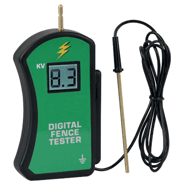 This is a digital voltage tester for electric fencing with an LCD digital display.