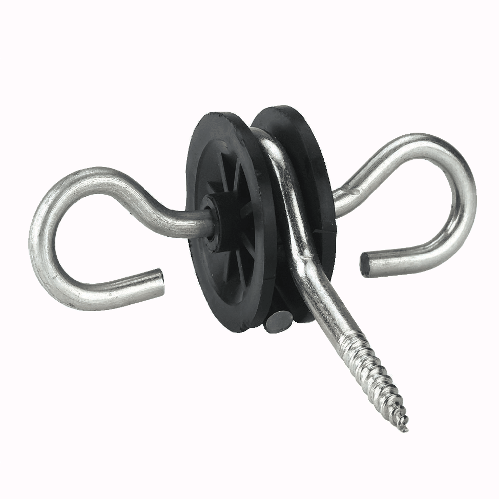 These are the screw in type for wooden posts. These are used when making a gate in an electric fence. Screw one in both the hinge post and the latch post of an electric fence and connect the two with a line of your conducting line & a gate handle. This makes for a cheap but effective gateway.