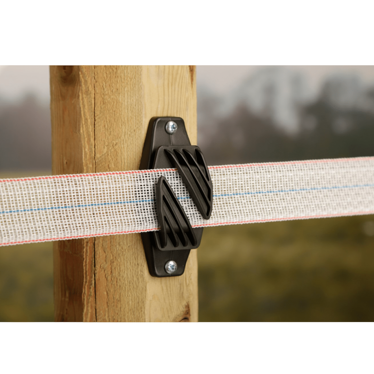 These are insulators to hold electric fence tape to a wooden post without restricting the movement of the tape. Most plastic insulators clamp or restrict the tape’s movement within the insulator to a degree but these are designed to allow the tape to “flow through”.