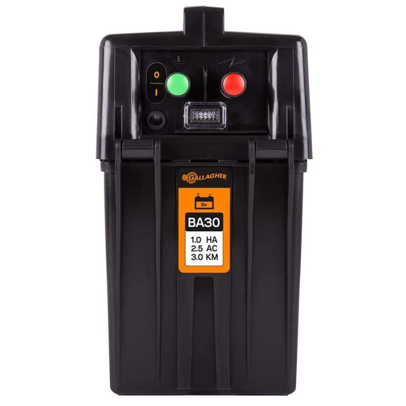 Like all Gallagher units, the BA30 is a solidly built energiser. Nothing fancy, just a sturdy machine with on/off switch & pulse light. Gallagher are so confident as to give it a 7 yr warranty* then you know it’s not going to let you down.