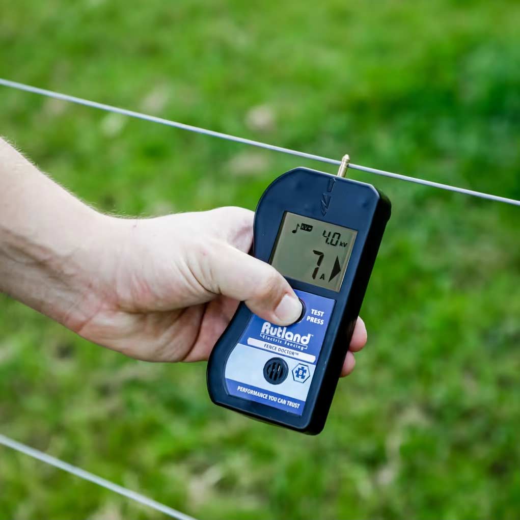 The Rutland Electric Fence Fault Finder, also known as the Fence Doctor, is a professional diagnostic tool designed for precise troubleshooting of your electric fence. This dual-function device works as both a digital fence voltage tester and ammeter, enabling you to quickly detect faults and pinpoint their location. The illuminated direction indicators guide you straight to the problem, saving valuable time in repairs.