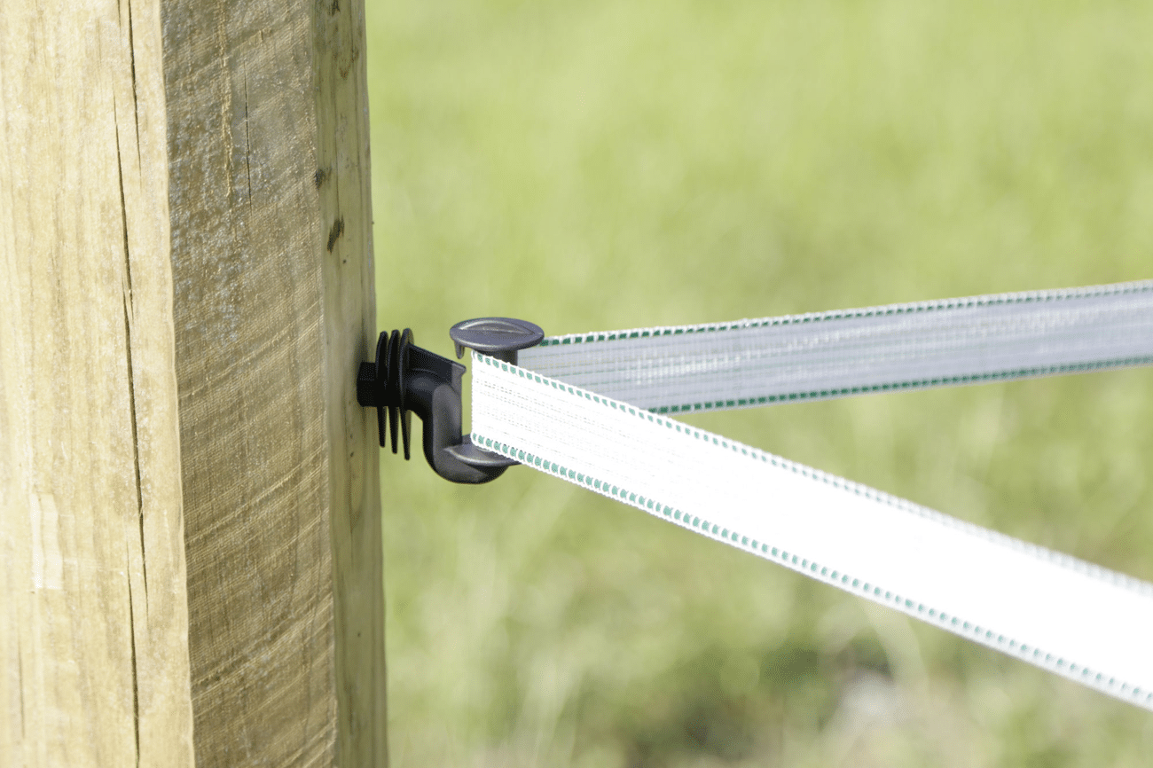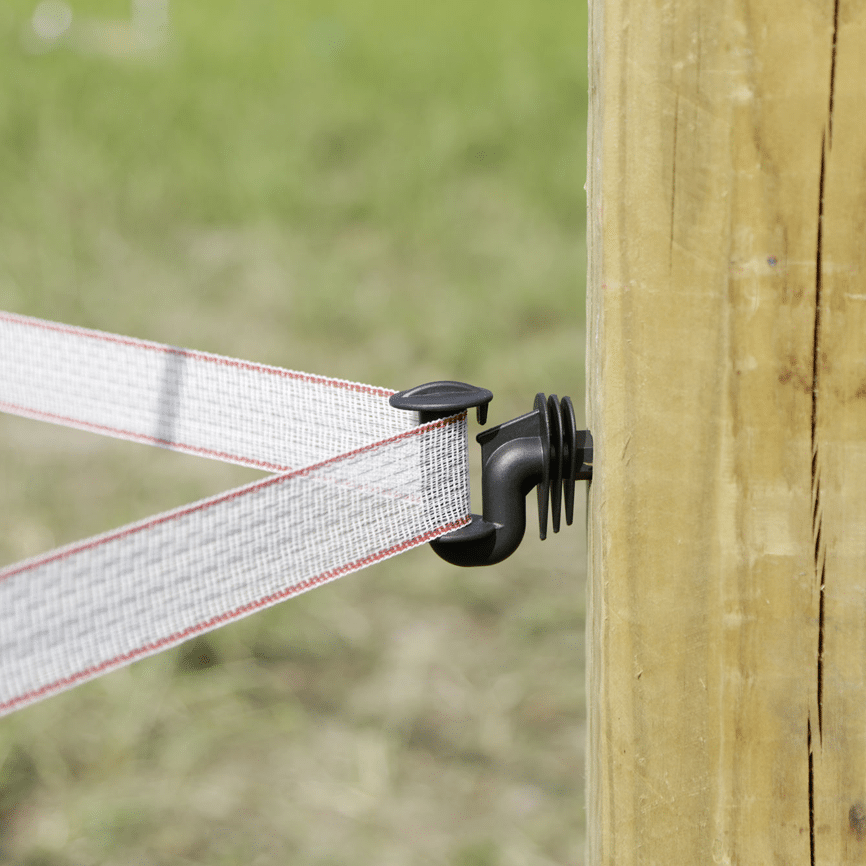 This is a screw in corner insulator for both 20mm & 40mm electric fence tape.