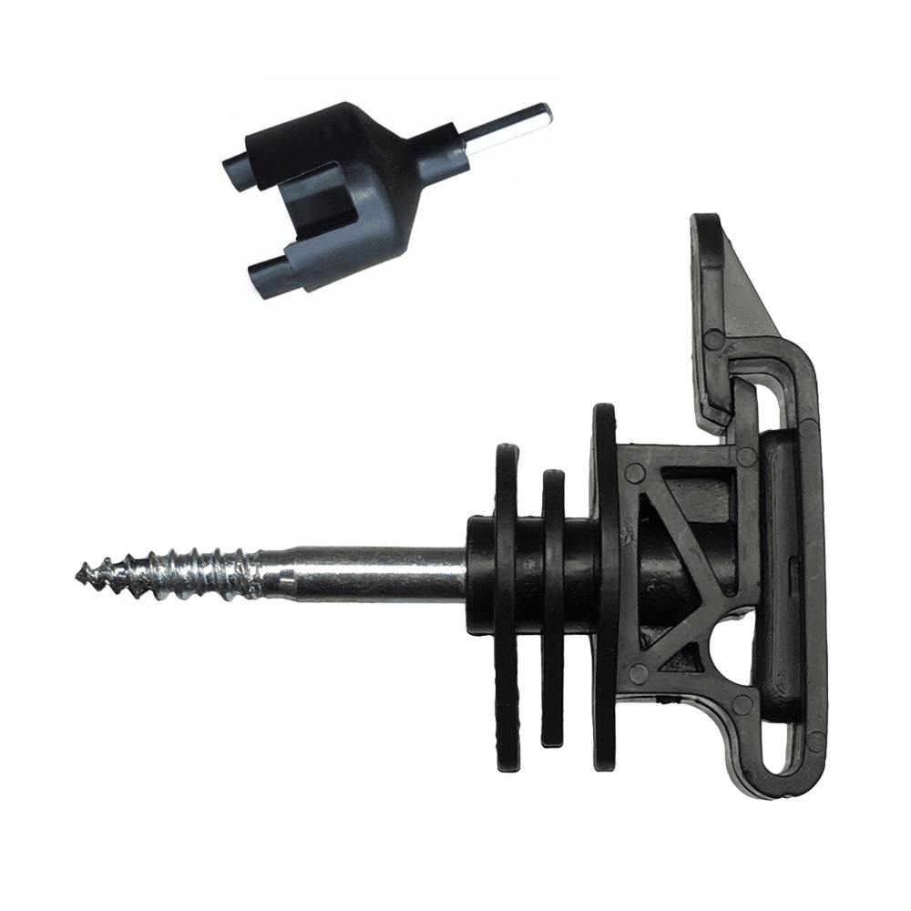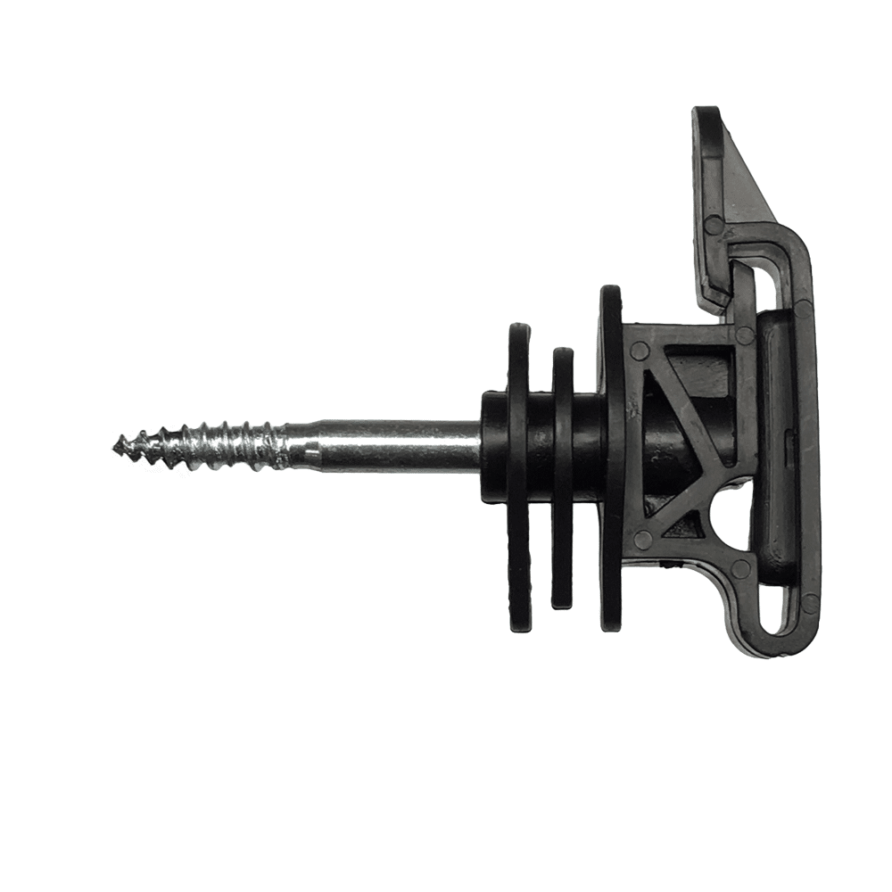 These are good quality insulators that screw into wooden fence posts and will hold tape up to 40mm wide or rope up to 6mm diameter.