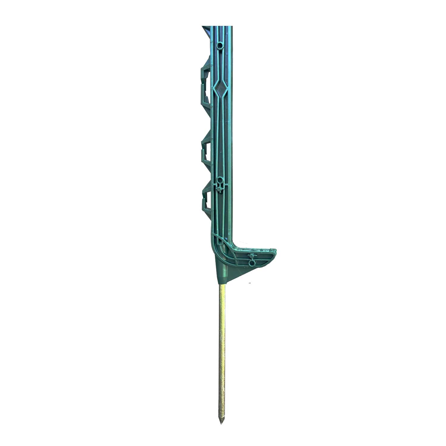 Multiple reinforced eyelets allow easy positioning of electric fence tape, rope or polywire, while twin top insulators make full use of the available post height. A reinforced tread plate provides secure footing when installing, and the injected 23cm ground spike ensures a good grip in the soil.