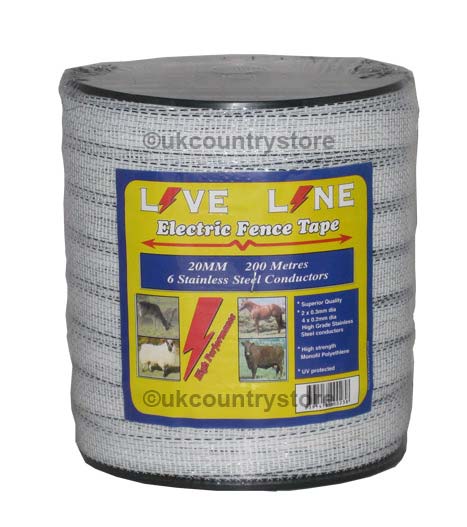 This high performance Liveline 20mm electric fence tape is a tough poly-tape for electric fences. It has two thicknesses of stainless steel conductors to give excellent conductivity.